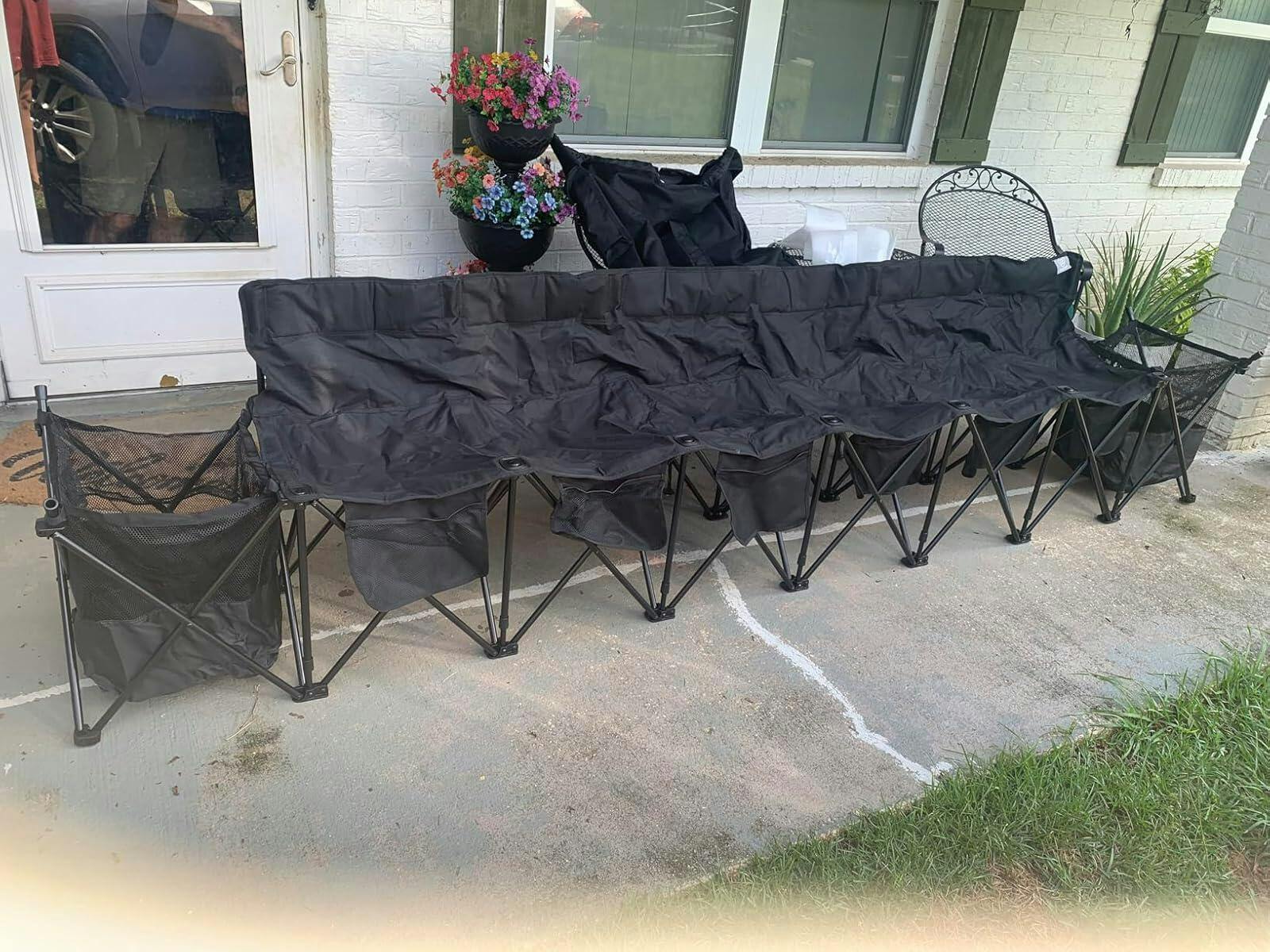 Whether you're setting up camp, cheering from the sidelines, or hosting a backyard barbecue, this 6-seat folding chair simplifies your setup by replacing multiple individual chairs with one cohesive seating solution. The included carry bag makes transportation easy, while the strong frame ensures reliable comfort and support for everyone.