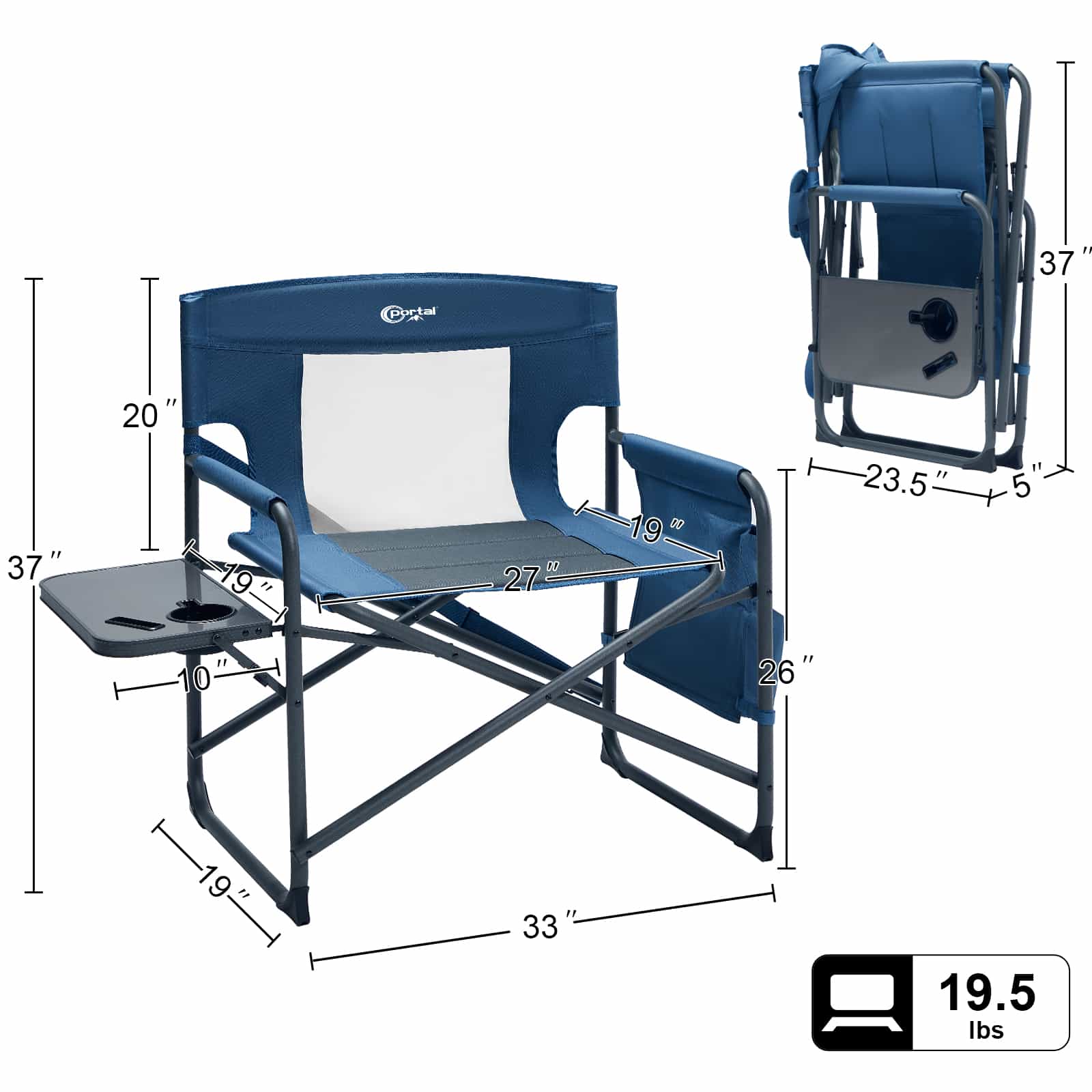 This folding director chair sets up and packs down in seconds; includes carry handle for hassle-free transport to camping, tailgating, fishing, or picnics.