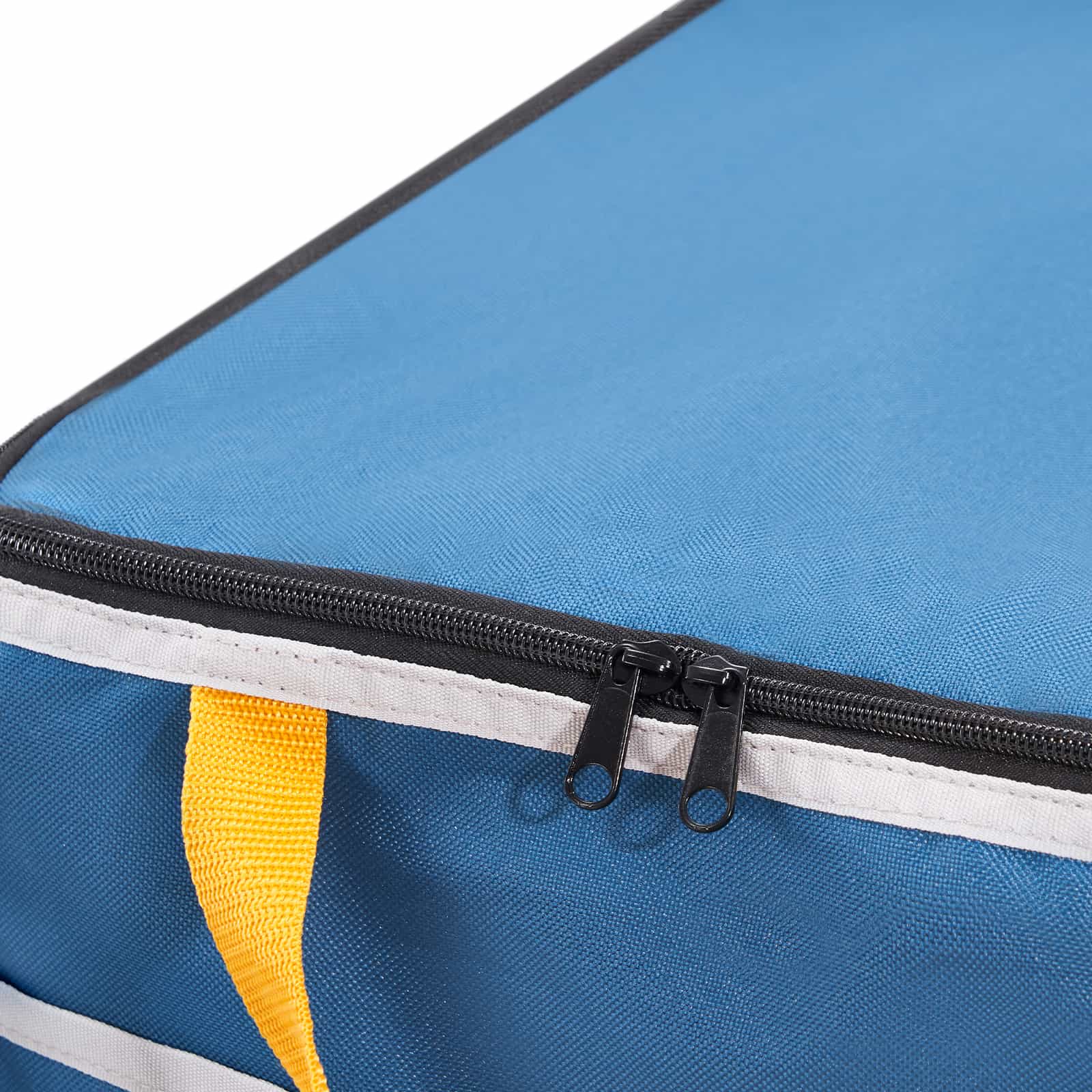 The 36.2"-high frame helps prevent bending or squatting when retrieving tennis balls. The zippered enclosure top keeps balls from spilling out while rolling between locations. Easy to fold and transport for travel.