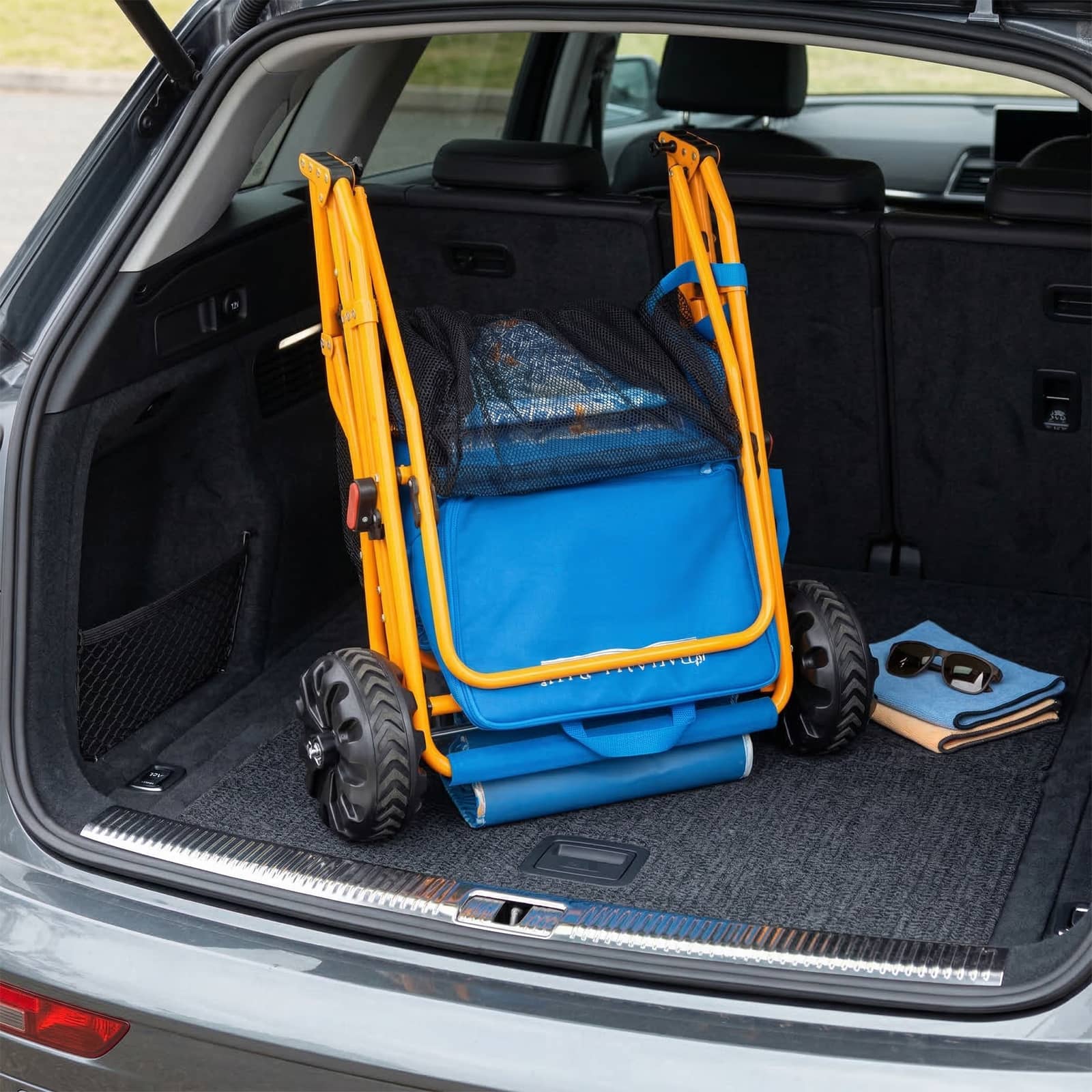 Designed with sturdy materials and wide, all-terrain wheels, this beach cart glides smoothly over sand, grass, or gravel. The foldable design makes it easy to store and transport.