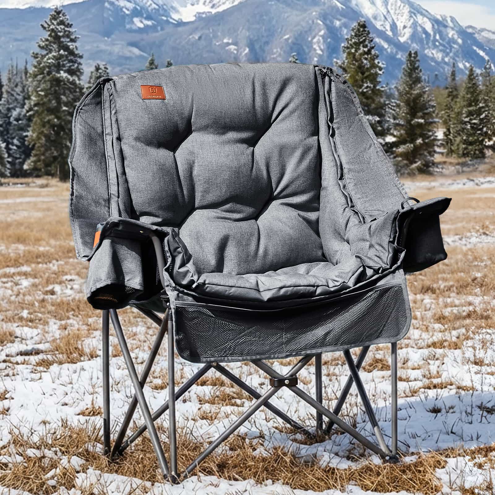 Designed for year-round comfort, this padded camping chair features a removable 6 cm thick cushion for plush warmth on cooler days. When temperatures rise, simply unzip and remove the cushion to reveal a breathable mesh seat that keeps you cool. This versatile 2-in-1 design adapts effortlessly to every season.