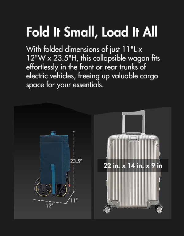 This ultra-compact collapsible wagon is a game-changer for EV owners, folding small enough to fit perfectly in front or rear trunks—especially in Tesla Model 3 and Y. Spacious yet portable, it’s ideal for camping, adventures, or daily use.