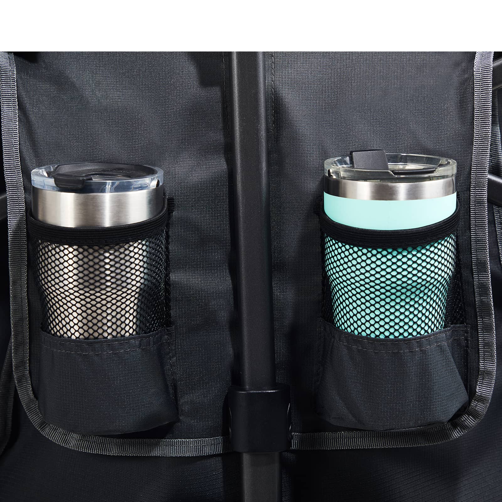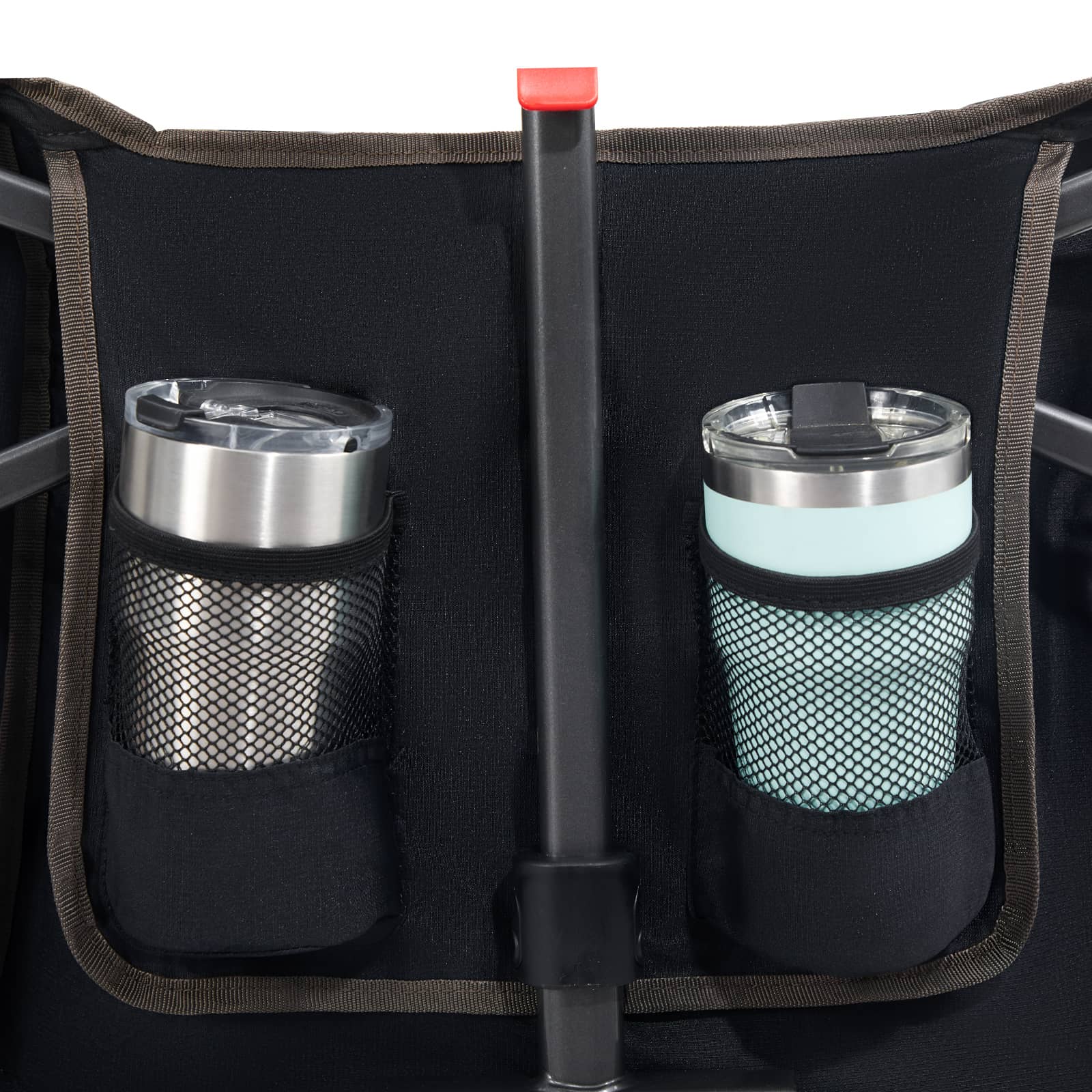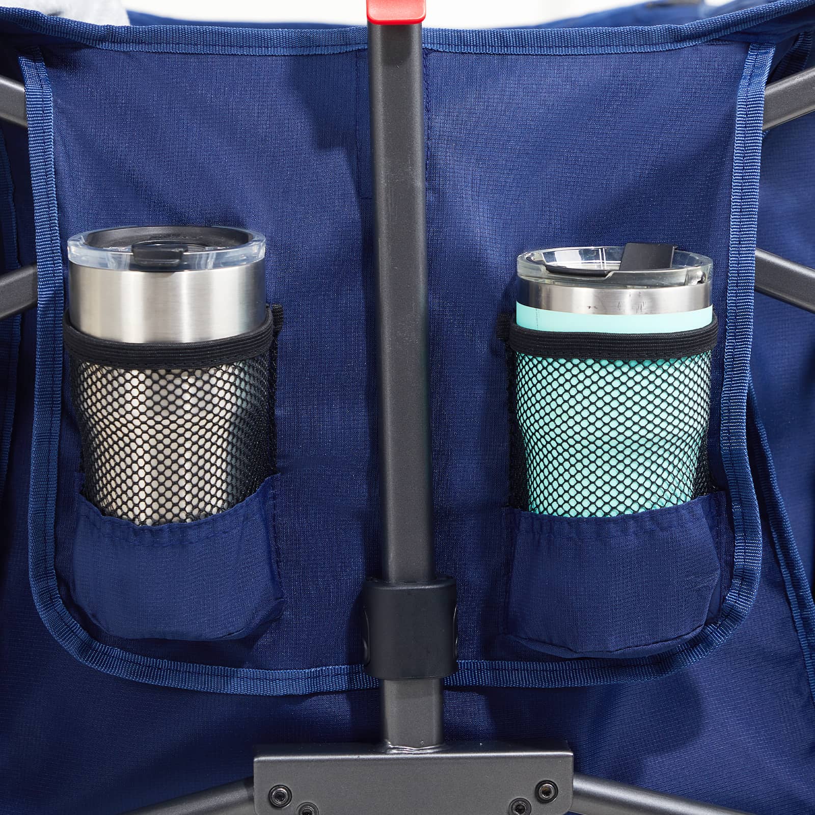 With UltraQuiet 7.87" all-terrain wagon wheels, the wagon is easy to clean and works perfect as a beach wagon and for group outings. Front wheels can rotate 360 degrees and both are equipped with brakes.