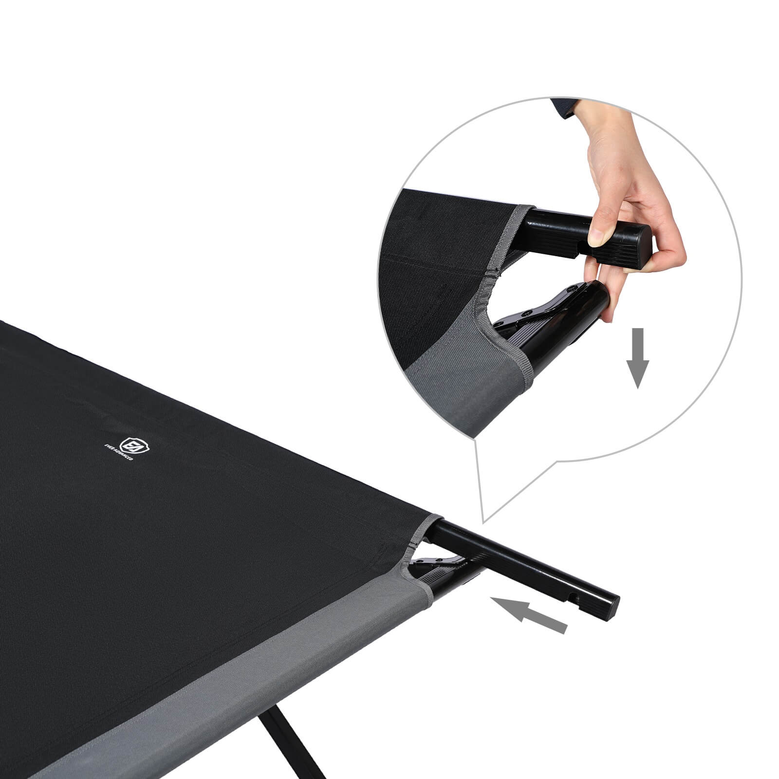 The oversize folding cot is assembled and folded into the carry bag and the only parts you need to put together are the 2 end tension rods. The camping cot with the high-quality carrying bag makes transportation and storage easy.